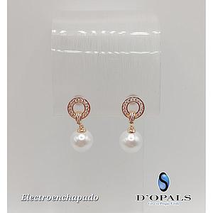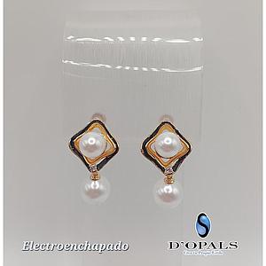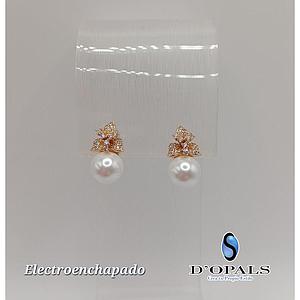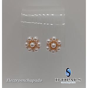 ARETE DE FLOR CON PERLA ELECTROENCHAPADO 18K